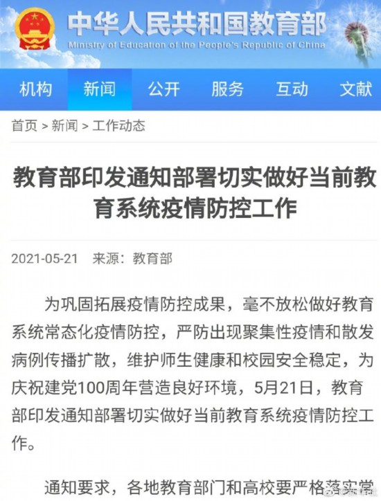 教育部21日印发通知,部署切实做好当前教育系统疫情防控工作。通知要求,严格落实常态化疫情防控措施,切实提高应对聚集性疫情能力,统筹做好高考、中考、艺考等重大考试和校庆、毕业典礼、大型会议、赛事等活动疫情防控工作。加强参加活动人员健康监测和防疫指导,合理确定活动人数,密闭场所活动要严格限定人数。