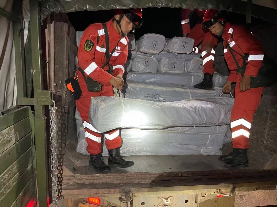 武警云南总队大理支队官兵搬运物资。图片由武警部队政治工作部宣传局提供