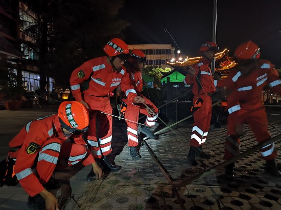 武警云南总队大理支队官兵搭建帐篷。图片由武警部队政治工作部宣传局提供