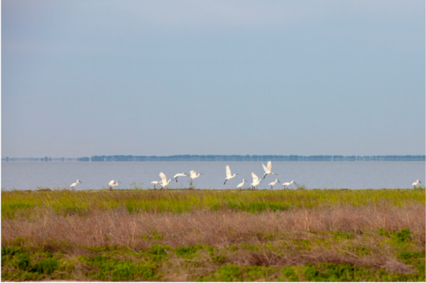 查干湖自然保护区生活的白琵鹭。(受访者提供)