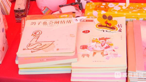 上午十点,记者在爱心义卖现场看到,各个摊位前早人头攒动,玩具、书籍、文具用品,小挂件,小饰品,这些都是爱心妈妈和孩子们精心准备的物品,而且价格也不贵,有三元五元的,也有十元二十元的,目的就是希望将它们转化成善款。