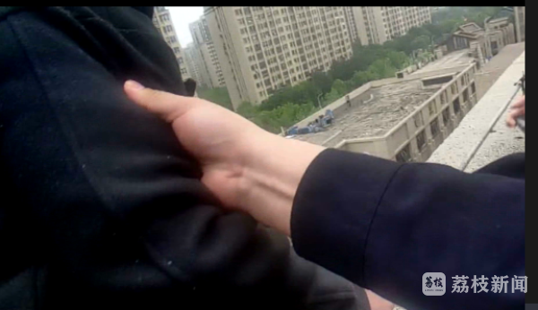 南京鼓楼公安分局上元门派出所民警赵子涞介绍:“他整个人坐在天台边缘,他身子探一下就可能会掉下去。我告诉他,帮他转交物品时必须先拍照确认,借着这个机会,我靠近他,然后我一把拉住他的胳膊,我的另一位同事赶忙上前,一起把他拽下来,这个过程大概只有1分钟。”
