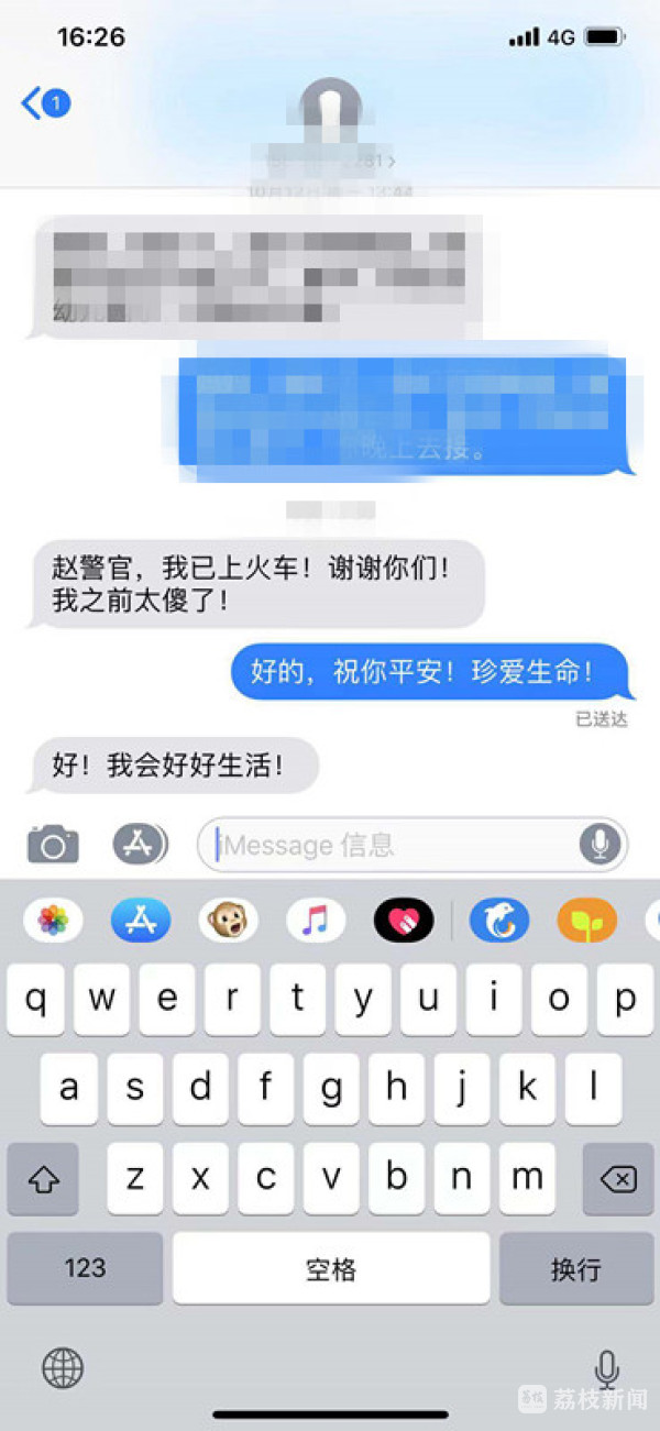 昨晚,心情平复了的梁某已经回湖南老家了,上火车前特意给民警发来了短信表示感谢,还承诺今后会好好生活。