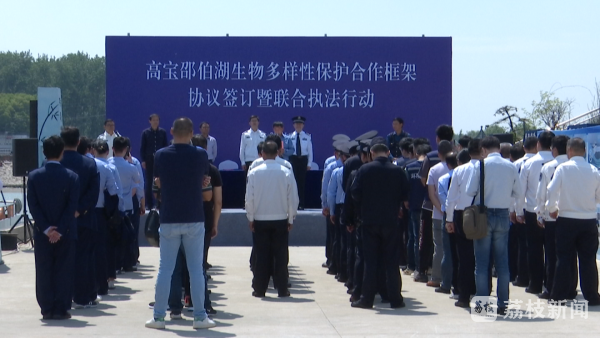 高宝湖渔管办渔政三大队大队长孙加赋说:“今天在这里签订协议,主要是为了落实长江保护法,改变我们渔政人以往的单兵种作战为多部门联合作战,更好地为维护湖区生物多样性贡献我们渔政人应有的力量。”