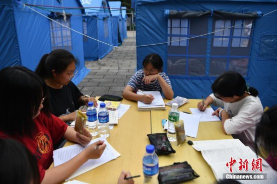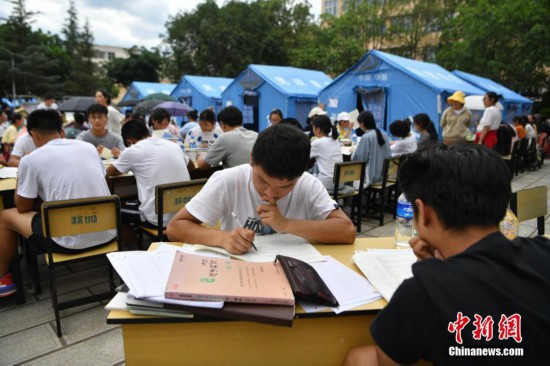 5月22日,云南省大理州漾濞县漾濞一中的高三学生在露天“教室”备战高考。5月21日,当地连发多次地震,最高6.4级。 中新社记者 刘冉阳 摄