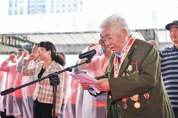 “我是一名老党员,出生在一个贫苦的家庭,1948年,我带头打土豪分田地,后来参军拿起了武器,为解放全中国而战斗。1952年参加了抗美援朝战争,保家卫国。我是战争年代的幸存者,也是和平年代的建设者,更是晚年生活的幸福者,我们要牢记共产主义的信仰,不忘初心。”启动仪式上,战斗英雄、老党员谈学贤老前辈讲述了革命岁月里无数先烈用生命和信仰谱写了壮烈的诗篇,回顾自己浴血奋战的历程,并用饱含激情的声音,带领在场所有党员重温入党誓词。