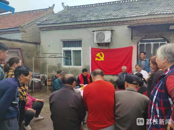 我苏网讯 “历史是最好的老师,我们党的历史是中国近现代历史最为可歌可泣的篇章……”5月21日,宿迁市泗洪县龙集镇东嘴居党员徐玉平家庭院内,渔民党员围坐在一起,聚精会神地听宣讲员罗元龙宣讲党史知识。