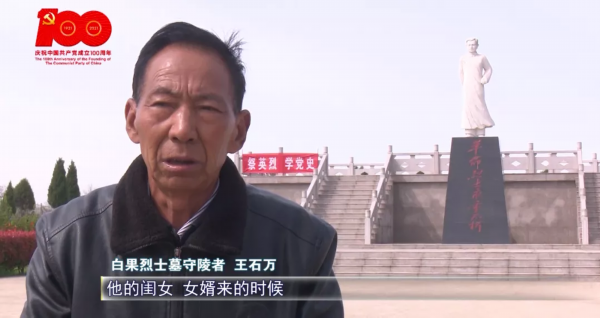 今年已经是建党100周年了,我们白果居委会的老百姓日子过得相当好,奔上小康生活,是白果烈士带着无数革命烈士,抗击日寇,浴血奋战,保护人民一方疆土换来的。