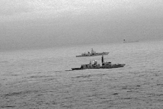 英国军舰伴航俄军“戈尔什科夫”号护卫舰红外照片。