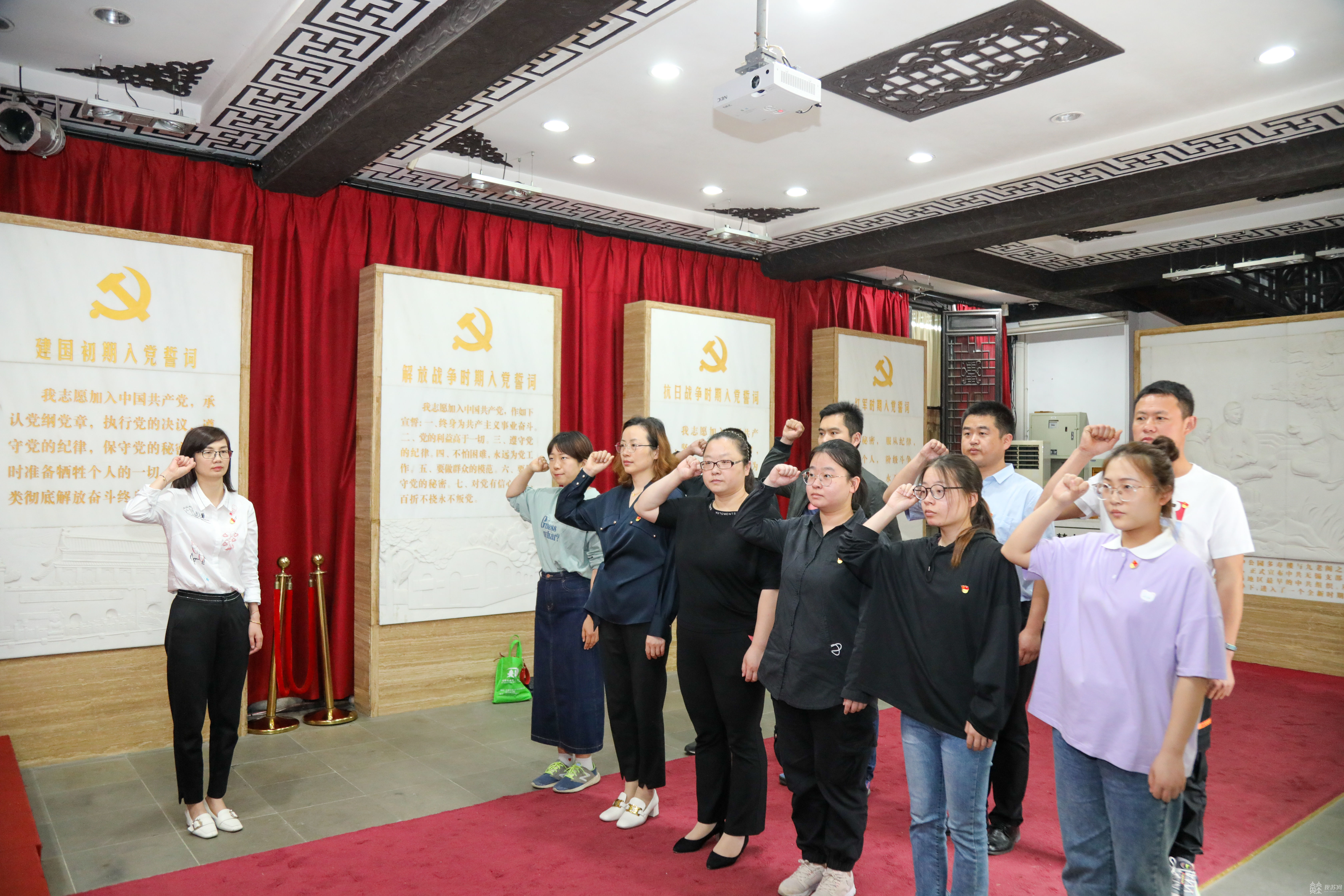 学党史,增强党性,新提拔党员干部寻访无锡第一支部党建基地。正值思廉月,为进一步增强新提拔党员干部和预备党员廉洁自律意识,提高对党的认识、坚定理想信念,提升个人拒腐防变能力,营造风清气正的政治生态和良好发展环境,在无锡第一支部党建基地以“沉浸式” 和“体验式”课堂参观学习,追忆红色岁月,牢记初心使命。重温入党誓词、观看党史教育片、唱响《国际歌》,聆听无锡籍杰出共产党人的传奇故事和英勇事迹,汲取榜样力量,砥砺赤胆忠心。东北塘街道的党员干部们从《誓言颂》中“洗涤”思想,坚定信念,续写征程,为建设“宜居宜业的靓丽城区”贡献自己的力量,唱响红色“最强音”。