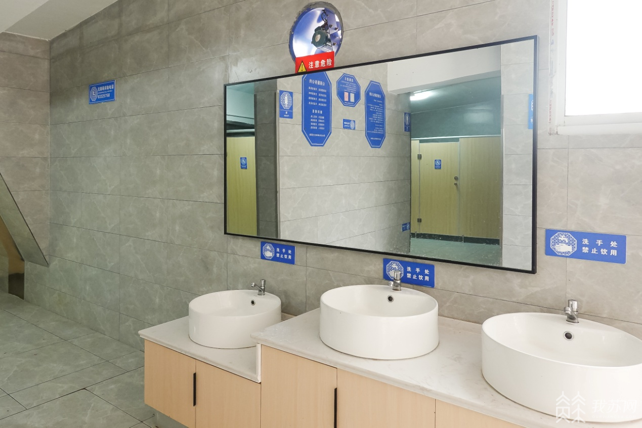 “小厕所关系大民生,小空间展示大文明。公厕既是满足居民生活需要的必备设施,也是体现人文关怀与城市文明程度的重要标志。”今年年初,洛社镇投入资金40余万元,对亿丰农贸市场公共厕所进行改造提升。在改造过程中,施工队将原公厕出入口进行了变更,由内部朝南改为菜场主通道朝东,形成开放式出入口,显得更为宽敞,又利于通风;将原有沟槽式厕位统一敲掉,改为单独隔间厕位,增加入厕者的私密性;在内部空间加设通风系统,将厕所墙面、地面、洗手台、管道水箱和照明设施全部出新。值得一提的是,公厕贴心地设计了残疾人专用坑位,坐便器旁安装了扶手,扶手边还有一个红色按钮警报器,方便残疾人如厕遇到紧急情况的时候寻求帮助。公厕每天雇有专人负责保洁工作,以每天至少打扫4次的频率,使厕所全天候保持干净整洁的内部环境。