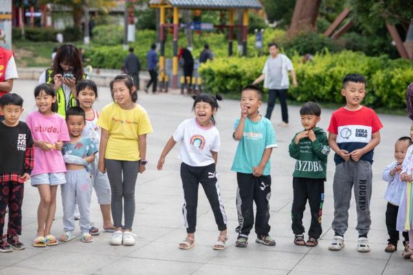 5月23日在云南省漾濞县人和广场安置点 孩子们在玩游戏 新华社记者胡超 摄