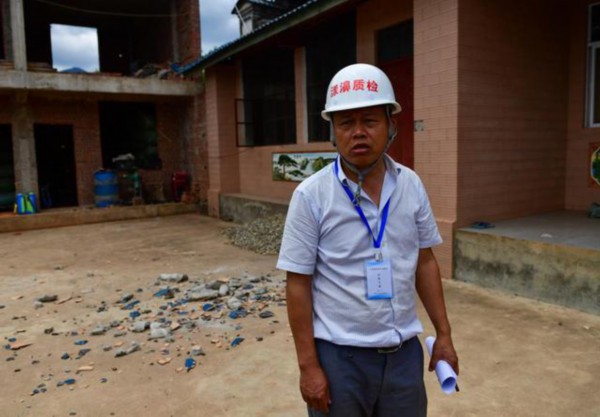 5月23日 大理州弥渡县住建局的专业工程师吴学海在一处受损房屋测量评估现场 新华社记者陈欣波 摄
