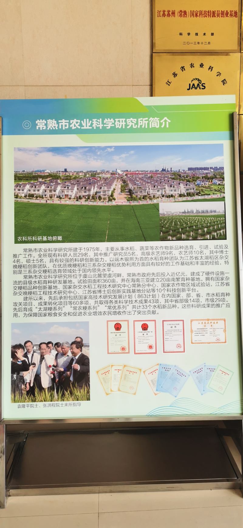 袁隆平院士对常熟水稻生产和杂交水稻研究多次给予高度评价。2007年,有三家单位争办“第四界中国杂交粳稻科技创新论坛”,袁隆平院士最终敲定放在常熟。2011年,经袁隆平院士首肯,在常熟市农科所设立“国家杂交水稻工程技术研究中心常熟分中心”。同年10月,他亲赴常熟出席揭牌仪式,还亲任分中心主任。2014年10月,袁院士又亲临常熟,在常熟市农科所试验田里看到新育成的杂交粳稻新组合后认为,杂交粳稻1千公斤组合有希望在常熟诞生。