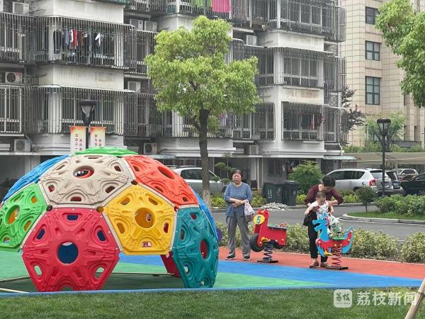 在宜兴临溪花园小区,走进这里,记者直观感受到是停车位错落有致,公共服务设施完备,更细致的是,这里的公共活动空间大变样了。“这里现在特别好,以前这个空地在这里好像没有什么用,现在你看看,我们带孩子来玩,什么设施都有,很方便,地面也软,也不怕孩子摔跤了。”居民蔡阿姨说。