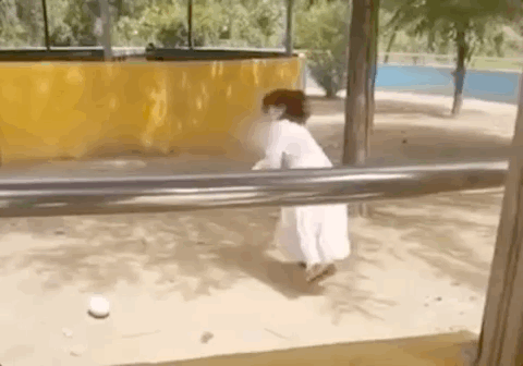 视频中,该女子翻越围栏后