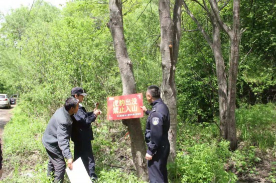 得知该消息后,天桥岭林业局和天桥岭森林公安局紧急启动联动机制,第一时间启动人虎冲突预案,对“完达山一号”野生东北虎最有可能进入的几个主要林场下达禁山令,在各入山主要路口增设虎豹出没标识和禁止入山警示牌,对辖区范围内的安全隐患进行排查,加大巡护和保护力度,避免猎套、电网等对野生东北虎造成误伤。