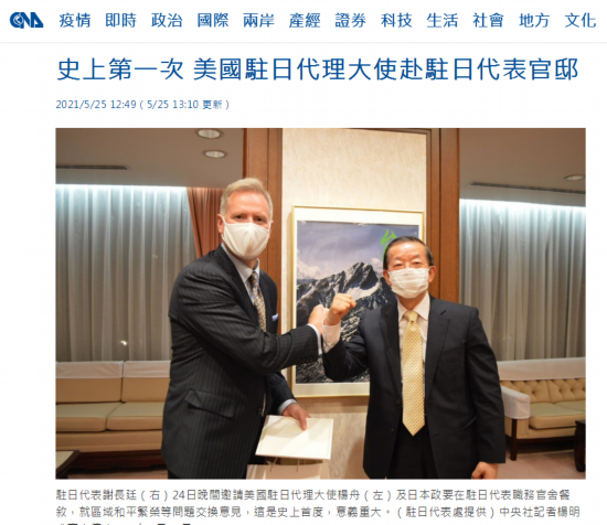 “中央社”在报道中称,这是“美国官方人士首次进入台湾驻日代表官邸”。