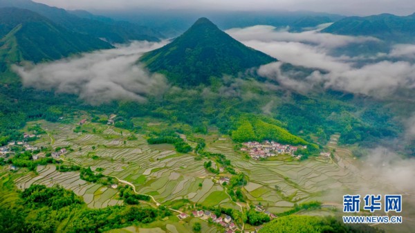 5月22日,航拍旌德县白地镇汪村岭下组高山梯田。