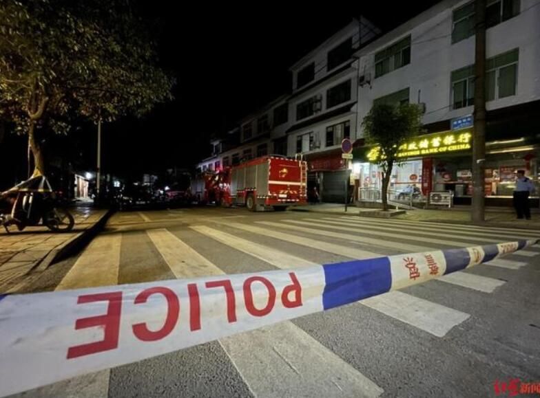 5月24日21时20分,红星新闻记者赶到长宁县双河镇,大量警车、消防车、救护车停在事发地现场附近的向阳街和学府街,交警对进入事发地周边的道路进行了临时管制,无关车辆不得进入。