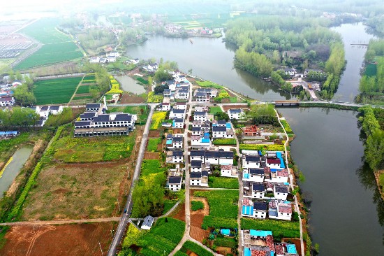 乡村振兴,村民受益。当前,卢滩村已改善370户农民住房,建设卢滩新型农村社区。项目采用“一二层联排、自带院落、白墙黛瓦、绿树繁花”江淮平原中式居民风格,并结合改造提升项目,全面整治环境、疏通水系,利用水车、磨盘、石碾等老物件进行生态化布置,在沟渠河塘沿岸搭配种植花朵鲜艳的桃树、梨树等经济型果树,既提升村庄视觉效果,又增加农民收入。