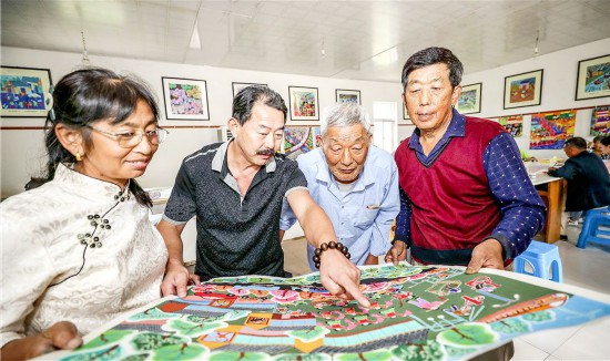 随着特色田园乡村建设,博里村构建以农民画为核心的发展框架,建设博里书画院,每周邀请专家前来,给村民指导授课,提升绘画技巧。同时,积极对接文化企业,将农民画加工成刺绣、瓷器等手工艺品,增加附加值。村民雍成柱2018年开始学画,现在多幅作品在省市获奖,靠卖画,每年增收近9000元。“我五六十岁了,与其出去打工卖力气,不如每天花点时间画画,陶冶情操,还能赚零花钱。”雍成柱说,农民画不仅增收,更转变民风,以前农闲时,村里尽是麻将声,现在多是笔墨香。