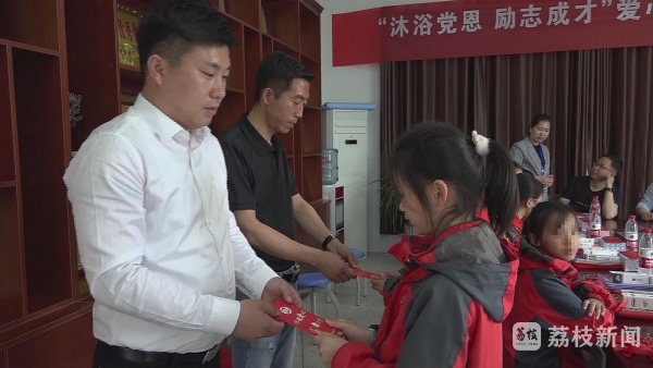 5月25日下午3点钟,刘亚东、杨成林在射阳县助残志愿者协会的志愿者陪同下,来到射阳县同心小学的三楼会议室里,九名接受资助的困境儿童早已等候在这里,志愿者给孩子们带来了学习用品、文具和牛奶、饮料等物品。简短的欢迎仪式之后,刘亚东、杨成林给五名孩子发放了每人1000元的助学金,志愿者给另外四名孩子发放了助学金。