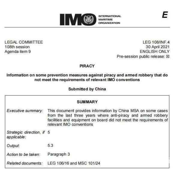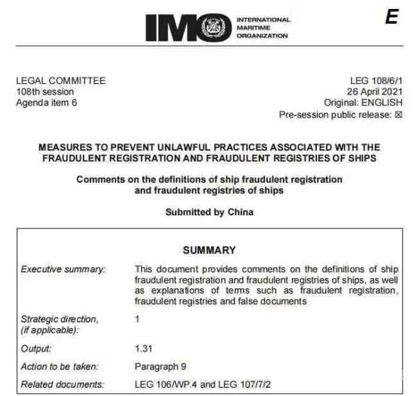 据介绍,国际海事组织法律委员会是国际海事组织五个委员会之一,主要负责审议国际海事组织的有关法律事务,起草有关法律方面的国际公约及其修正案。