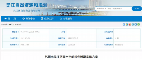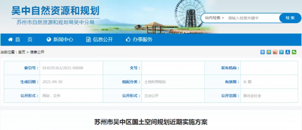 最新消息来啦! 目前吴江、吴中、相城、苏州高新区苏州这4大区向社会分别公开了空间规划近期实施方案。