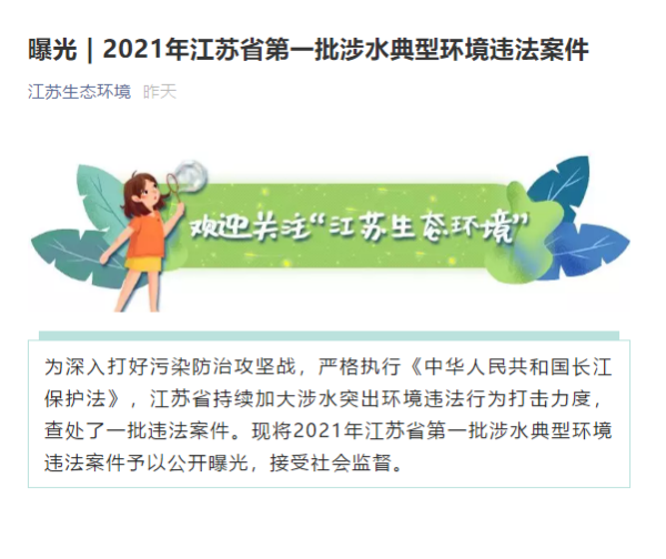为深入打好污染防治攻坚战,严格执行《中华人民共和国长江保护法》,江苏持续加大涉水突出环境违法行为打击力度,取得积极成效。昨天(5月24日),省生态环境厅向社会通报了今年江苏第一批涉水典型环境违法案件。
