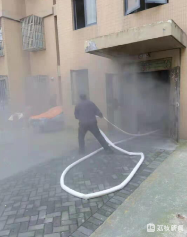 “因火情比较大,整个厨房间都在着火,手持灭火器已经不顶用了,我赶紧带上队员把走廊上的消火栓打开。”保安队长邵体恩说,在保安的齐心协力下,奋勇扑救了大约十分钟,火及时被扑灭,未给住户带来更大的财产损失。