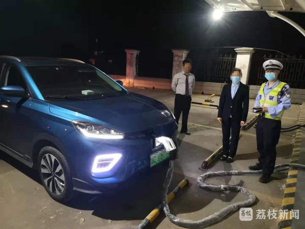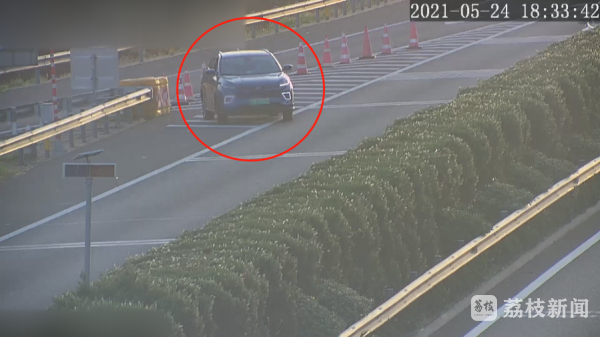 5月24日19时许,徐州市交警支队高速四大队民警在视频巡逻时发现,在淮徐高速高作服务区入口处,一辆蓝色新能源SUV竟然在应急车道的分界线上向后疯狂倒车,随后进入匝道驶入服务区,现场情况是十分危险。