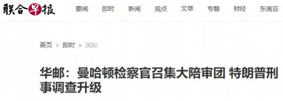 报道表示,这表明该检察官认为,他已经掌握证明特朗普、与特朗普关系密切者或特朗普公司的犯罪证据。