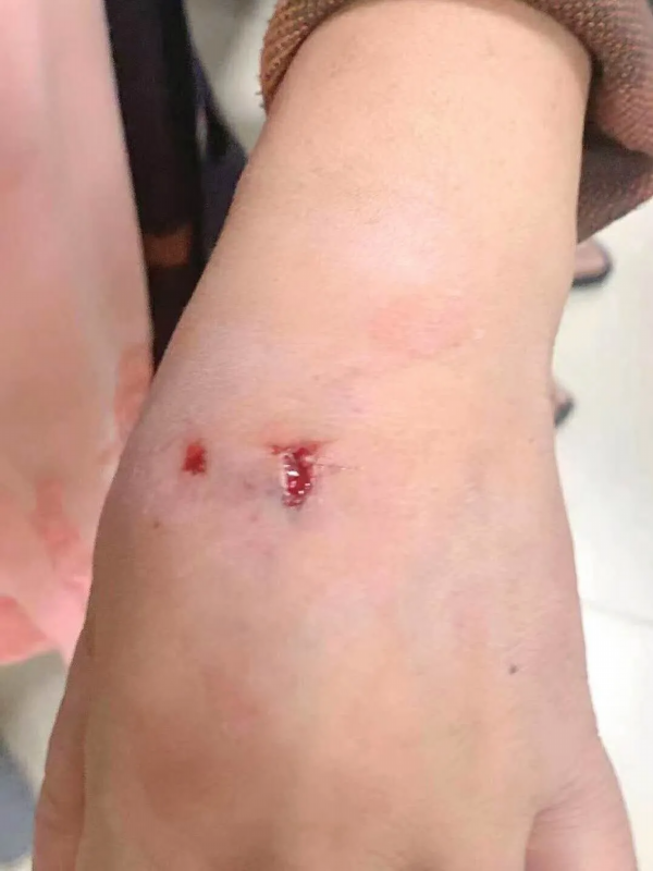 负责金鼎名城居民小区管理的物业公司工作人员袁金兰说,22日那晚她不当班,故而没有直接接触了解此事,“不过,我人虽然不在涉事现场,但是,却有不少朋友通过微信给我发来黑狗袭击无辜居民的视频资料,还有伤者被咬后的各种图片。说实话,挺吓人的。那只咬人的狗,听说往小区西侧路段逃掉了……”