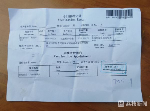 5月25日下午5点,泰兴黄桥临时疫苗接种点正式开始为泰兴四中全体教职位工接种新冠疫苗。