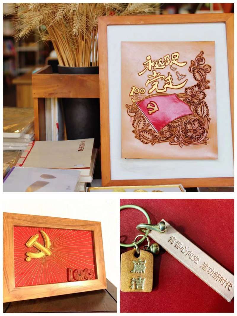 此外,常熟团市委依托常熟市青年手工艺人协会、常熟市新兴青年群体联盟等团属社会组织,动员各领域新兴青年发挥职业特色、个人特长,围绕建党100周年、美丽常熟建设、江南文化等主题,创作原创漫画、手工皮雕、非遗盘扣等文创作品10余件(类),引导新兴青年把党史学习教育心得融入文艺创作,进一步提升学习效果。在制作文创作品后,常熟团市委推荐优秀作品参加常熟“五四·虞青”文创集市、苏州“江南文化 苏作青春”主题展,以党史主题文创为载体,扩大新兴青年群体社会影响力,在全社会营造浓厚的红色氛围。