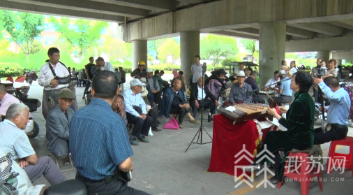 坠胡、扬琴、竹板的声音在桥下响起,表演者婉转的唱腔也让现场的观众听得如痴如醉,尽情享受苏北琴书这一独具地方特色的传统文化魅力,不少市民拿出手机记录下这精彩演出。