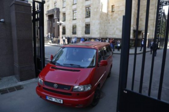 △4月19日,捷克驻俄罗斯大使馆员工乘车离开(图片来自美联社)