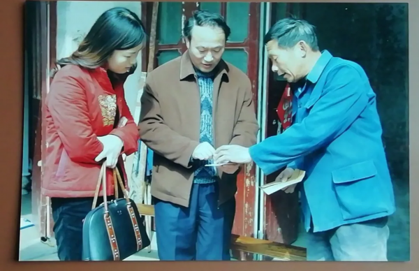▲中间为原档案局局长沈秋农 右一为刘葵隆本人