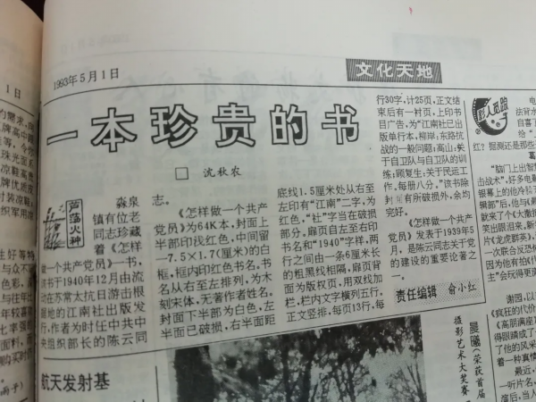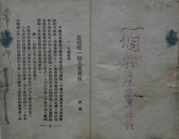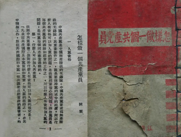 1984年春,常熟市淼泉镇吴庄村的刘葵隆同志在拆除旧房时,从房梁上发现一本出版于四十多年前的重要著作——《怎样做一个共产党员》。此书写于1939年5月,作者是时任中共中央组织部长的陈云,由中共东路特委领导下的江南社于1940年12月翻印。