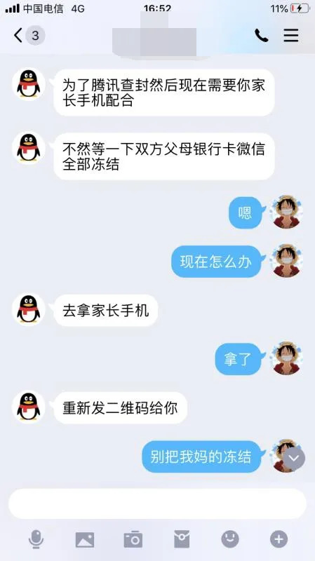 小军心想充值这么多钱,可以尽情玩王者荣耀游戏了,但是打开游戏链接,发现没有充值啊,怎么回事呢?小军很是纳闷,又不敢讲给妈妈听。小军妈妈等吃过晚饭忙过家务后,像往常一样看看手机信息,“啊,五笔支付信息,四万多元”,发现不对劲,想起儿子刚才用自己的手机,追问儿子,才晓得儿子犯错被网络游戏的骗子骗了。