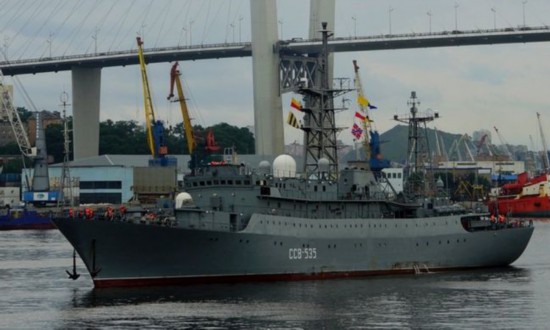 报道称,虽然美国太平洋舰队没有提供更多官员这艘俄罗斯舰船的细节,但“海军研究学会”了解到这是一艘俄罗斯海军的“卡累利阿”号(SSV-535)电子侦察船。这艘母港位于符拉迪沃斯托克的舰船是俄罗斯海军7艘专门从事信号情报截获和破译的电子侦察船之一。