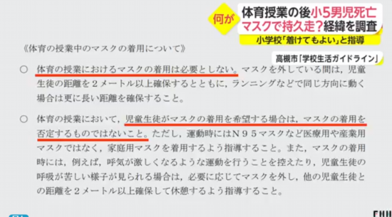 涉事小学表示上体育课时可不戴口罩(日媒截图)