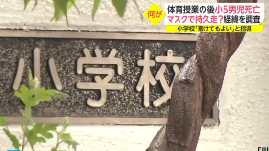 日本大阪府高槻市教育委员会27日表示,该市一所小学的5年级学生,在今年2月上体育课跑步时倒地身亡。他自体育课开始,就一直戴着口罩上课,市教委称,戴口罩和死亡的因果关系目前尚不明确。
