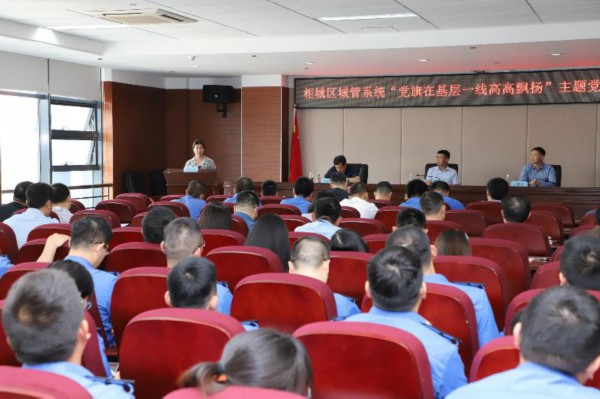 5月25日,苏州市相城区城管系统开展“党旗在基层一线高高飘扬”主题党日,通过书记上党课、宣发倡议书、党员职工代表表决心等方式,激励和引导党员干部深入贯彻落实全区城市管理工作会议精神,奋力开创相城城市管理工作新局面。
