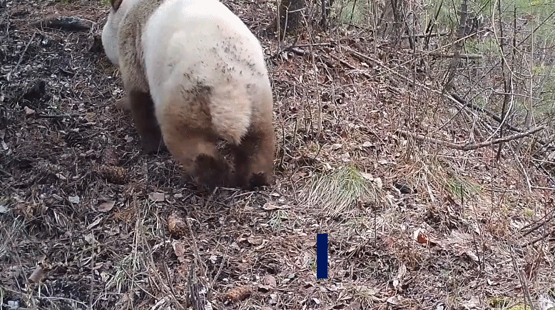 近日,秦岭大熊猫国家公园周至管理分局职工在收集整理布设的野外监测红外相机时,意外发现相机两次抓拍到了野生棕色大熊猫影像资料。
