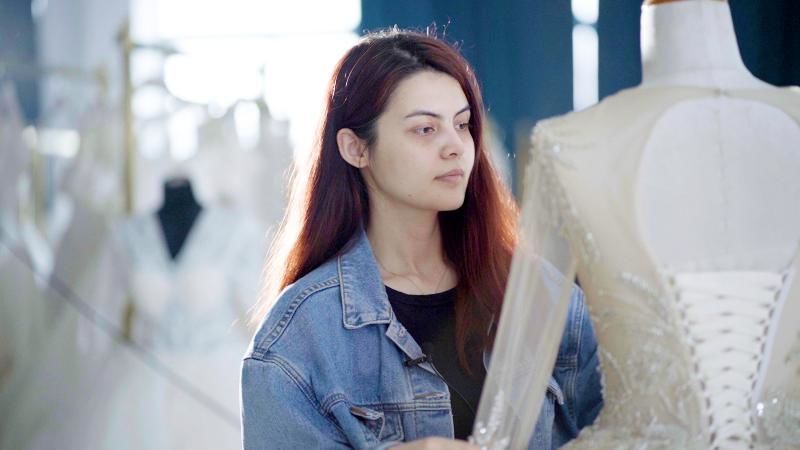 毕业后,已经积累了一定客源和经验的迪丽胡玛尔,决定与几位朋友正式开启创业之路,通过将市场需求与自身特长相结合,为客户量身定做,提供创意设计,打造属于自己的婚纱品牌DELLUNA。