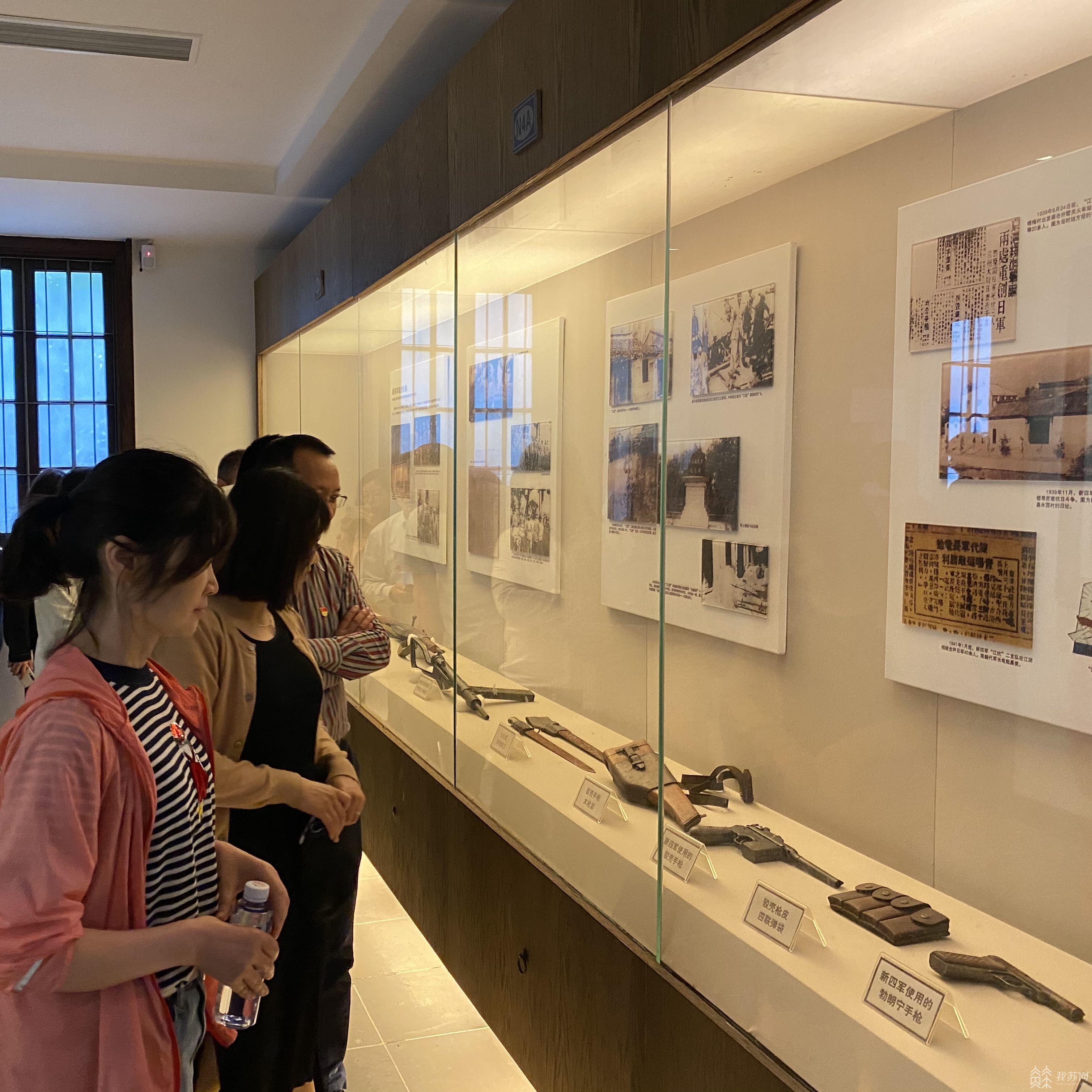 无锡锡山工信全体人员怀着对新四军革命战士无比崇敬的心情,进入纪念馆参观。纪念馆是一栋两层的西式小洋楼,是新四军六师驻地中保护最完好的一处指挥部,保持了当年的外型、结构和风貌。馆中陈列史料翔实,内容丰富,从入口往馆内缓步走,一路墙上图文并茂的展板,向我们展示着当年新四军革命战士们浴血奋战、保家卫国的那段峥嵘岁月。馆内藏品丰富,陈列着革命前辈们当年的作战武器、行军用品、手稿书本等。玻璃展柜里陈列着的各式枪械武器,一下将我们的思绪带回了那个烽火连天的年代;看着新四军战士们简朴的茶碗茶壶、薄薄的军装布鞋和字迹铿锵有力的手稿,深刻体会到当年抗战胜利来之不易,他们穿着单薄甚至破旧的衣服,但心中怀揣的是革命必胜的信心与决心!