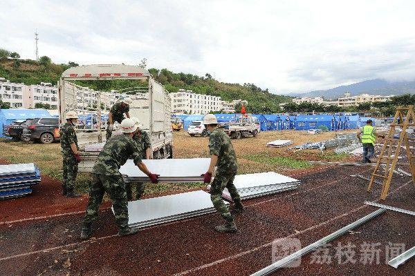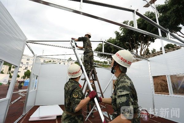 为更好帮助高三学子备战高考,连日来,正在灾区抢险救援的武警云南总队大理支队官兵昼夜搬运板材、搭建板房,尽全力为即将高考的学子们创造一个安全、舒适的学习和考试环境。