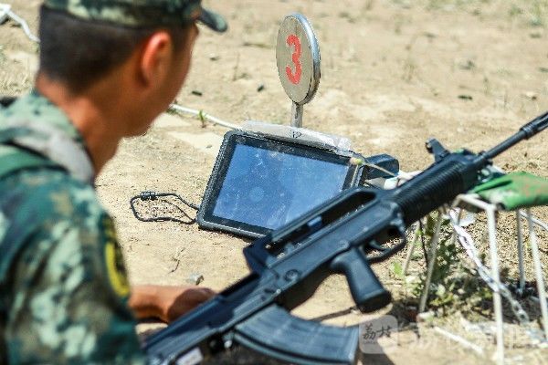 此次实弹射击,采用自动报靶系统。一轮实弹射击后,射手位置旁的某型显示终端上即刻显示弹着点。新兵可以通过观察弹着分布及时调整射击状态,从而打出一轮轮可喜成绩。